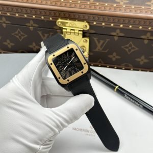 Cartier Santos 100 XL Black ADLC Replica Watch Black Dial Gold Bezel 41x51mm